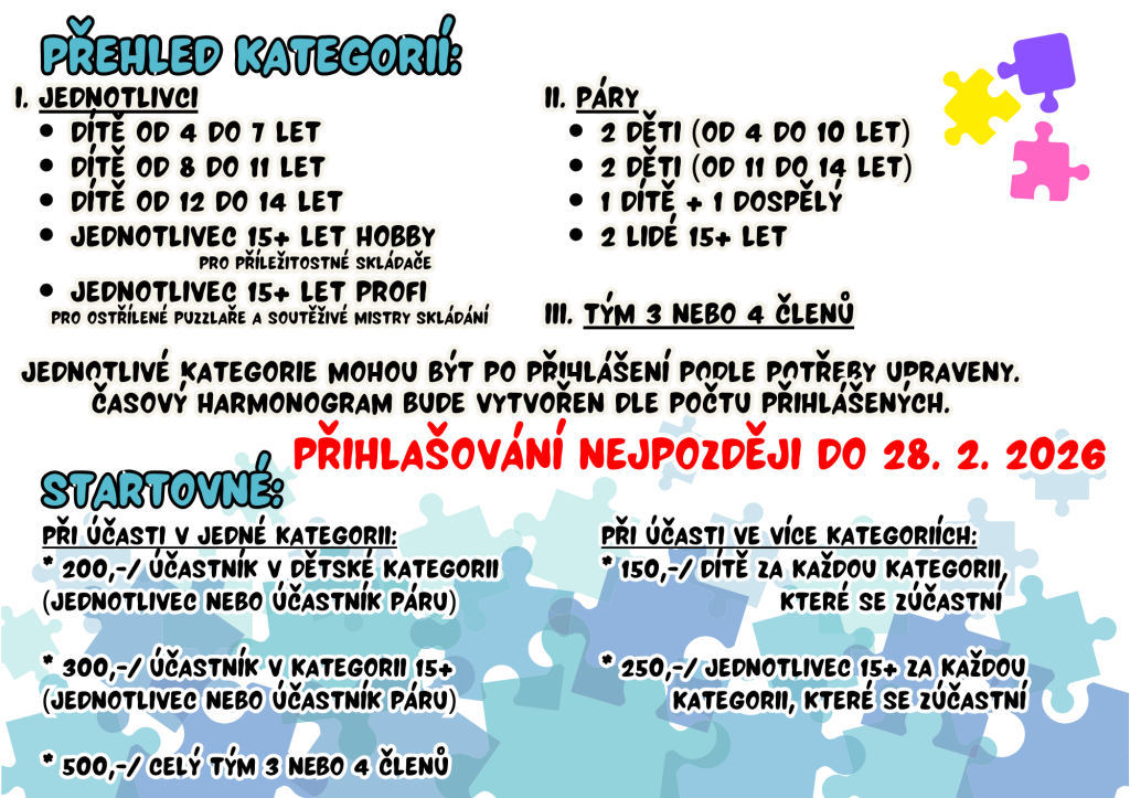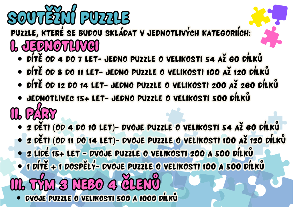 2. ročník soutěže ve skládání puzzle. Časový harmonogram soutěže bude zveřejněn po ukončení přihlašování.